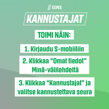 PeTon pesäpallojaosto on mukana Eepeen kannustajat -ohjelmassa. Liity kannustajaksi Eepeen mobiilisovelluksessa ja tue toimintaamme!