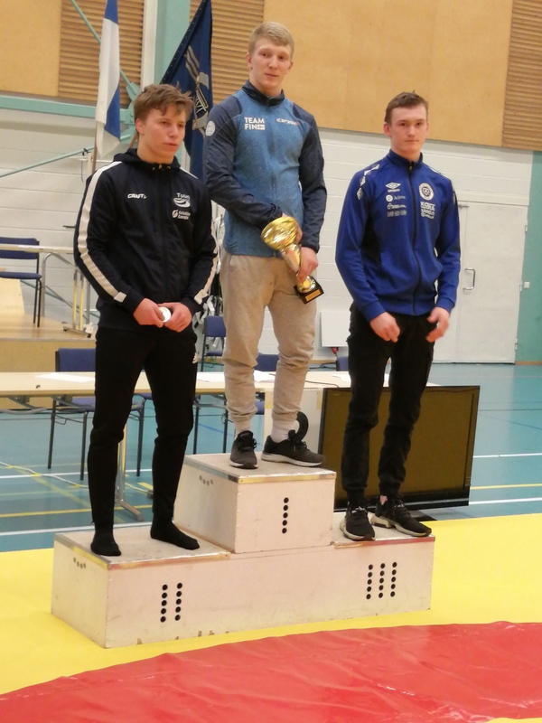 ![]() 63-kiloisisten mestariksi väänsi Perhon Kirin Lauri Karjalainen ennen Viialan Pyryn Eemeli Rautasta (2.) ja Vaajakosken Kuohun Juho Lambergia (3.) ![]() 67-kiloisissa Vaasan Voima-Veikkojen Nestori Mannila oli niukasti seurakaveriaan Arttu Hakalaa parempi. Kolmanneksi sijoittunut Haukiputaan Heiton Markus Vittaniemi puuttuu kuvasta. ![]() 74-kiloisten ylivoimaisen voiton saavutti Ilmajoen Kisailijoiden Akseli Yli-Hannuksela. Kakkosijalle väänsi Seinäjoen Paini-Miesten Jussi Autio ja kolmoseksi Kisailijoiden Joonas Perkka. |