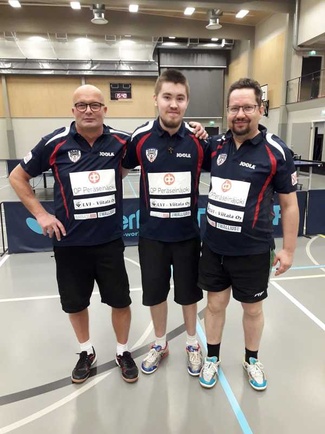 ![]() PeTon edustusjoukkue Toholammin syysturnauksessa. Vasemmalta: Kai Asunmaa, Juha Julmala ja Esa Wallius. |
